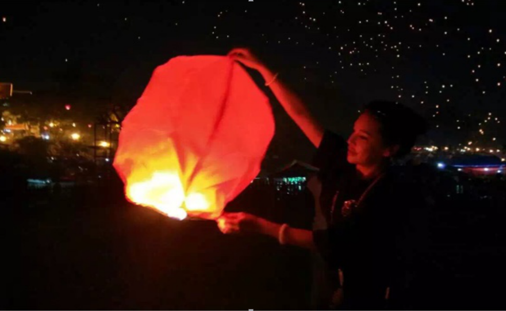 (13號晚上,導演邵曉黎攜主創人員在美麗的瀾滄江邊,參與到“萬人齊放孔明燈活動”中,一起放飛天燈,祈愿影片拍攝順利,祝愿所有人新的一年健康喜樂、美夢成真。)