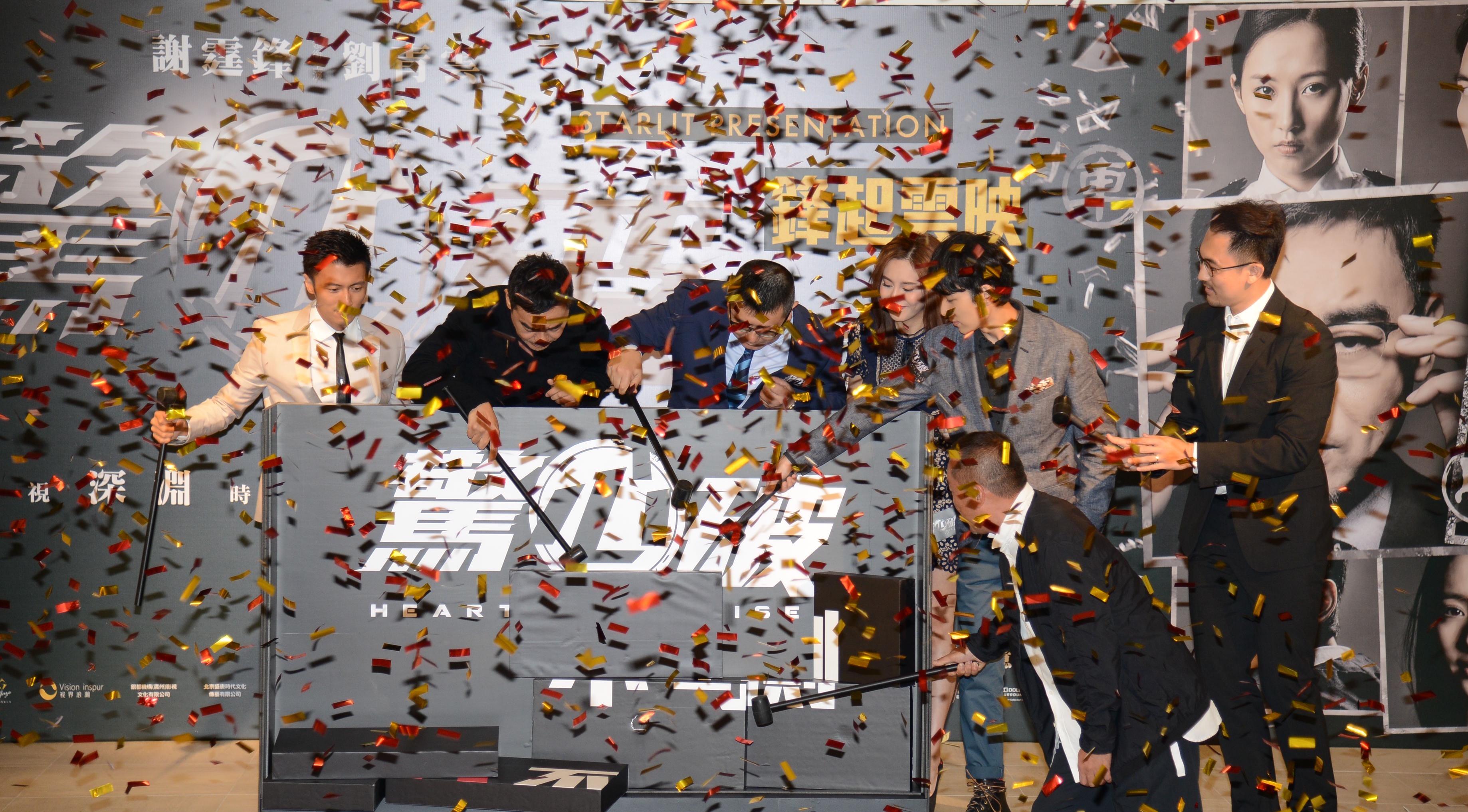 隨后,影片出品人陳一奇率導演吳品儒及眾演員一同用錘打破象征著警匪片格局的木箱,寓意斗智破格的電影《驚心破》將打造警匪片新格局。